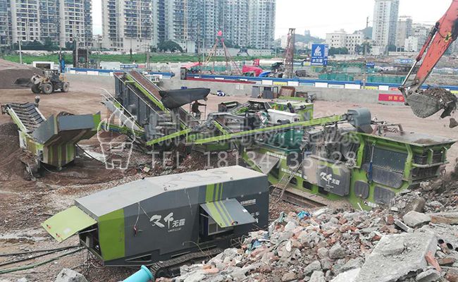 移動式建筑垃圾處理設(shè)備在溫州資源化項目使用現(xiàn)場