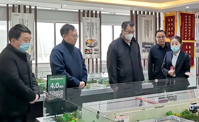 何守法廳長(zhǎng)一行首先參觀了鄭州鼎盛綠色循環(huán)產(chǎn)業(yè)園展示大廳,聽(tīng)取了公司重點(diǎn)項(xiàng)目發(fā)展和多個(gè)綠色低碳技術(shù)創(chuàng)新成果的介紹,包括建筑垃圾及工業(yè)固廢資源化利用裝備、金屬耐磨材料及綠色膠凝材料研發(fā)制造等方面內(nèi)容。