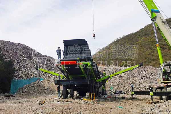 鄭州鼎盛移動(dòng)式建筑垃圾處理生產(chǎn)線安徽客戶現(xiàn)場(chǎng)安裝中